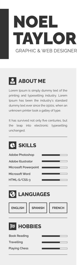 • The CV should not include italics, scripts, and underlined words, and also do not use horizontal or vertical lines, graphics, or shading.